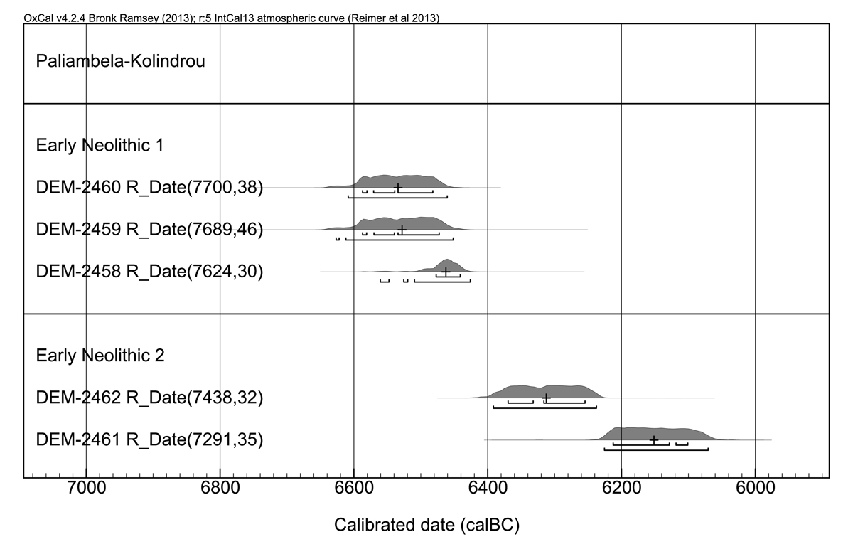 Figure 1. Calibrated dates from the Early Neolithic levels of Paliambela-Kolindrou
