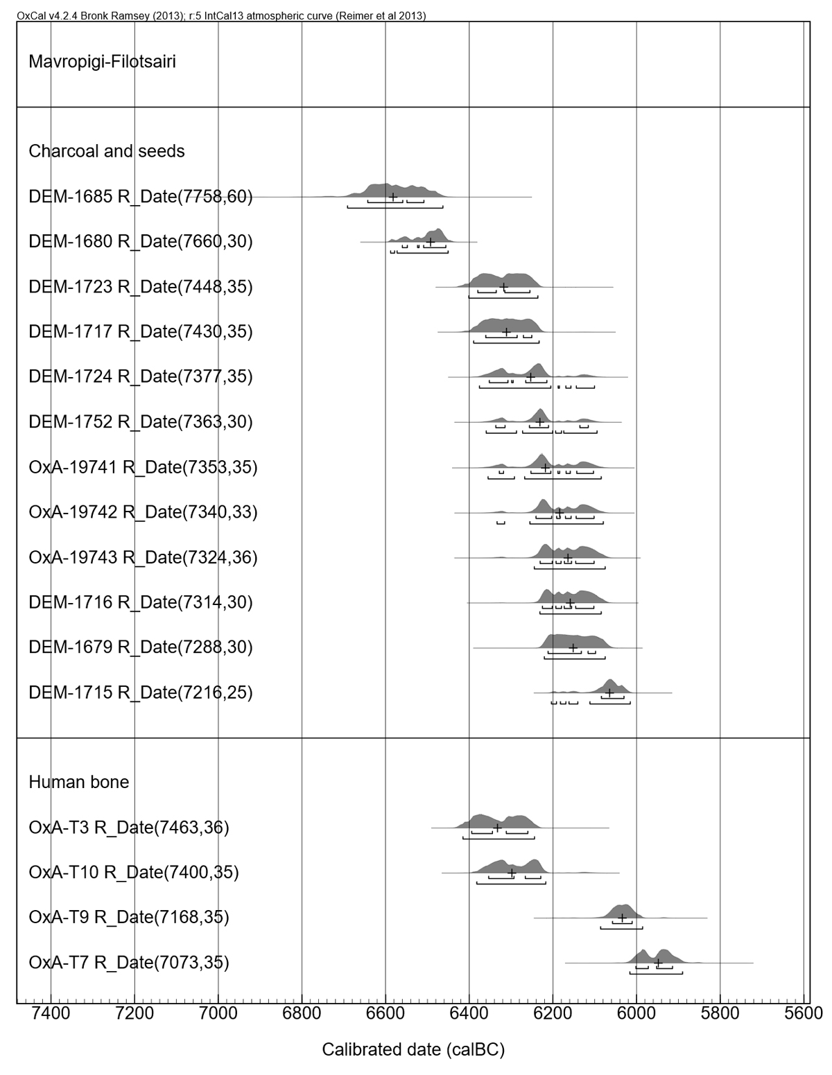 Figure 2. Calibrated dates from Mavropigi-Filotsairi