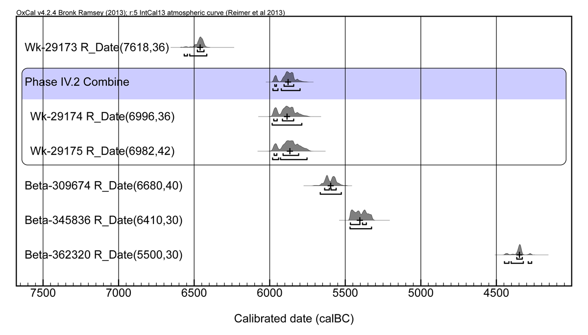 Figure 5. Uğurlu dates. The Phase IV.2 combination (Acomb=119.7%) yields a 1σ range of 5970–5840 cal BC.