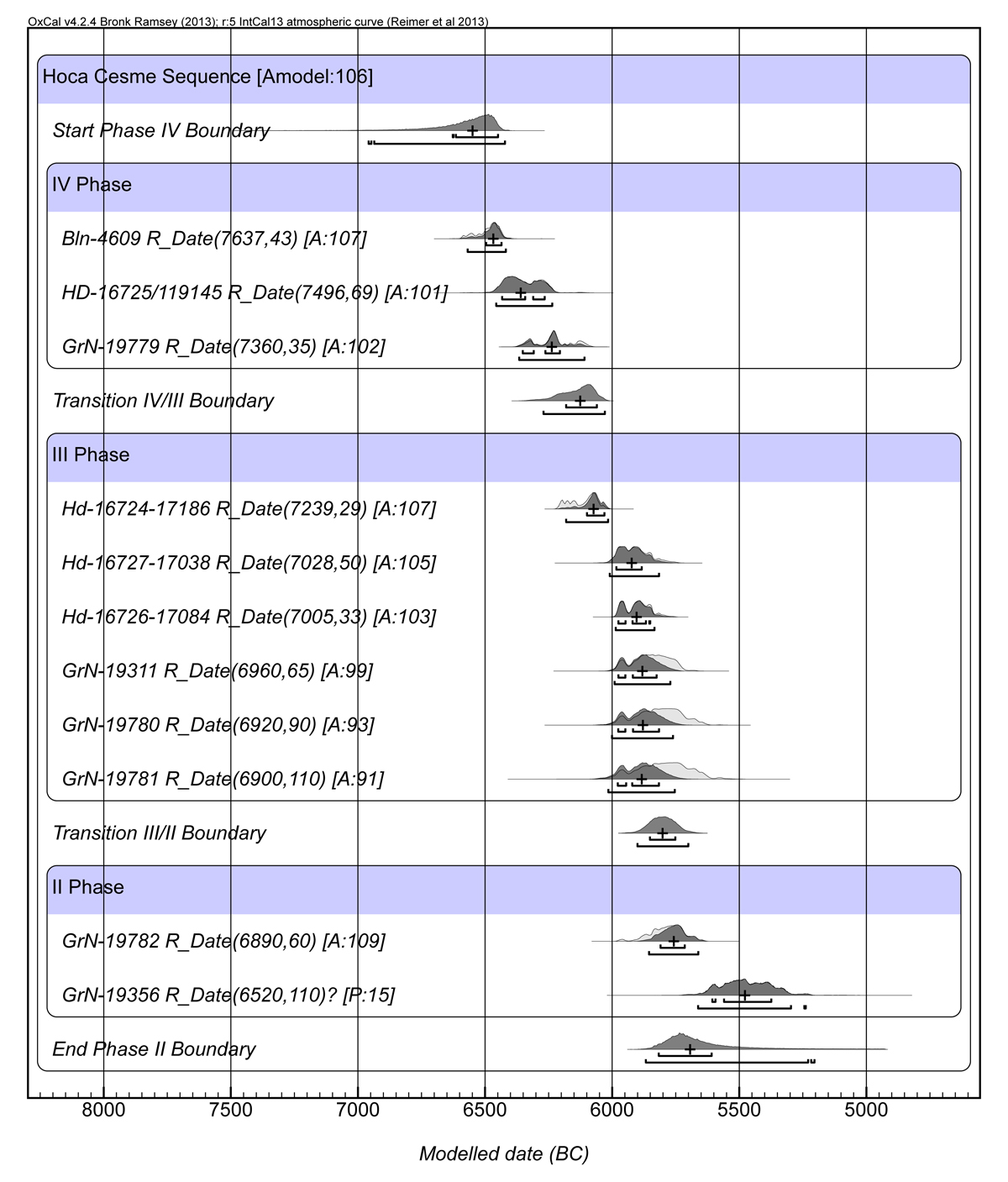 Figure 6. Hoca Çeşme boundary model. Phase II date GrN-19356 treated as an outlier, but is probably an intrusion from overlying Phase I.